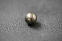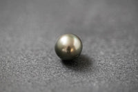 Elegante, rund geformte Tahitiperle in tiefem Dunkelgrau. Ihr intensiver Lüster und die perfekte Rundung machen sie zum Highlight für hochwertigen Schmuck mit zeitlosem Stil.